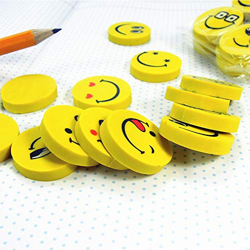 MINGZE 36 Pezzi Emoticon Gomma, Cancellare Gomme Set Emoticon Erasers Ricordo Per Festa Bambini Compleanno Battesimo Natale Regalo Festa In Giardino Modello Casuale