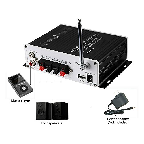 V10 Mini amplificatore per auto Bluetooth 12V DC, amplificatore di potenza audio per amplificatore a 2 canali con telecomando, supporto FM / MP3 / TF / USB / DVD (senza adattatore) (Nero)