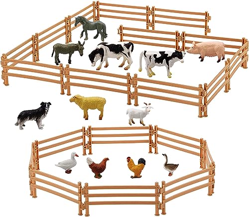 12 Pz Set di Mini Animali Fattoria Giocattolo con 20 Recinzione Piccoli Giocattolo Realistico,Giocattolo Recinto Fattoria,Giocattoli Animale da Fattoria Figure Set,Giocattoli per recinzioni di Cavalli