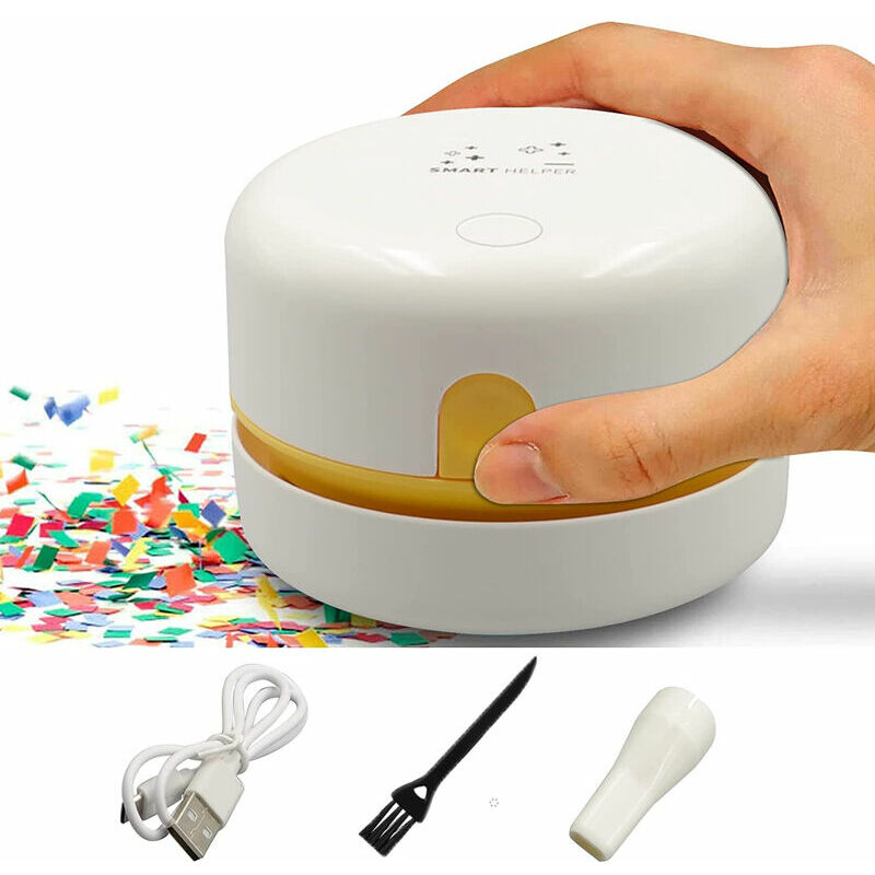 Piccolo e comodo: taglia 8 x 8 x 6 cm, cordless, leggero e portatile, facile e comodo da pulire. Uso: facile da usare con interruttore on/off, ed è anche facile rimuovere polvere o sporco, dopo la pulizia sulla tua scrivania, puoi rimuovere la scatola di raccolta della polvere e gettare la polvere e lo sporco nella spazzatura. USB ricaricabile: il design aggiornato della piccola porta di aspirazione lineare della turbina e il motore ad alta velocità da 10000 giri/min, forte aspirazione. Applicazione: può essere ampiamente utilizzato, per aiutarti a pulire il cestino sulla scrivania in modo facile ed efficace. Può pulire vari mini detriti come fuliggine, briciole di torta, schiuma di gomma, capelli, ecc., le dimensioni di riso, carta, ecc. Buona qualità : Realizzato in h Alta qualità, ecologico, robusto e durevole.Anche un regalo bello e meraviglioso per i tuoi amici o la tua famiglia. < img