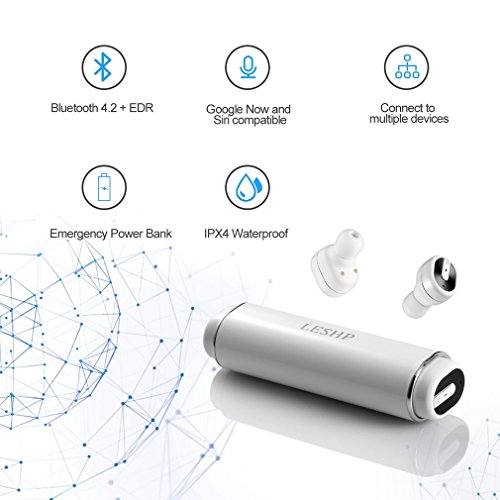 Mini Auricolari Bluetooth Senza Fili 4.2, Sport Auricolari Impermeabili IPX4 Sweatproof con Microfono, Stereo Cancellazione di Riduzione per Dispositivi iPhone, Android e Windows (Bianchi)