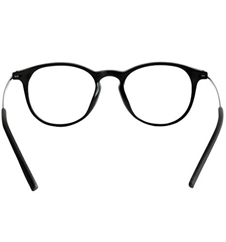 Mini Brille Occhiali Rotondi Neutri con Luce Blu Bloccanti, Montatura in Plastica (Nero) con Aste in Acciaio Inox, Custodia inclusa, Gaming Occhiali Finti Senza Gradazione per Donna e Uomo