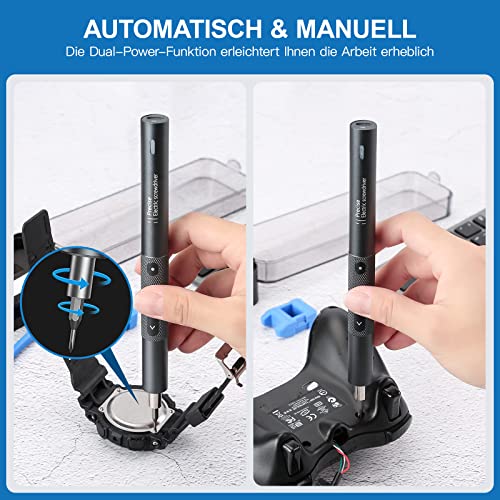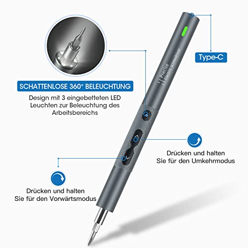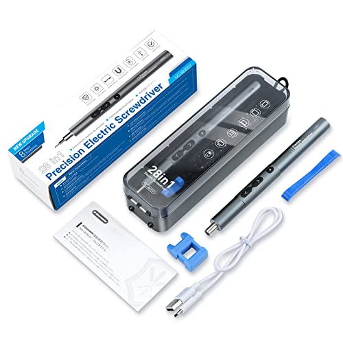 Set di cacciaviti elettrici con versione aggiornata: il cacciavite dinamometrico 28 in 1 è realizzato in lega di alluminio di alta qualità per una piacevole sensazione al tatto e una maggiore durata. Anche piccolo set di cacciaviti con doppia modalità di alimentazione e commutazione One Touch. Questo avvitatore elettrico a batteria è dotato di 24 bit, adatto per la maggior parte dei moderni dispositivi elettronici come smartphone, tablet, fotocamere, giocattoli, occhiali, orologi, ecc.