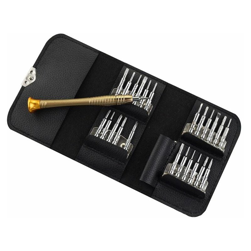 Il set di cacciaviti di precisione in acciaio al cromo vanadio viene fornito con 1 custodia per tenere tutti i tuoi strumenti al sicuro e abbastanza piccoli da poter essere portati con te o riposti ovunque. Grazie alla superficie scanalata e antiscivolo, l'impugnatura si adatta perfettamente alla tua mano e ti aiuta anche a installare viti di fermo per risolvere i problemi. Facile da usare: svita il corpo principale del cacciavite e posiziona il trapano per il montaggio di diversi trapani. Una volta posizionato, non si muove. Set di cacciaviti per tutti i piccoli lavori di riparazione di casa, serie PC, laptop ed elettronica: un must per la meccanica fine come elettronica, telefoni cellulari, ideale per modellismo fabbricazione, fai-da-te, riparazione di orologi e pittura di occhiali. Cacciavite di precisione Mini 25 in 1 Kit di cacciaviti Strumento di riparazione per telefoni cellulari, laptop, notebook, orologi, gioielli, giocattoli, occhiali, ecc. Set di cacciaviti con custodia in