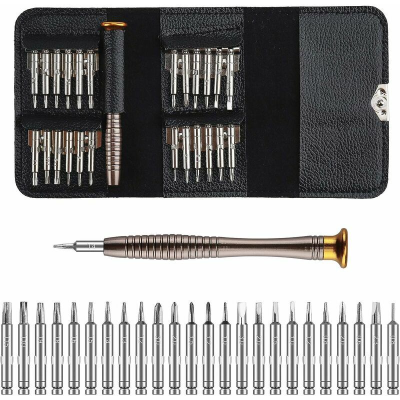 Informazioni su questo prodotto: Design unico: il manico in lega, leggero e resistente e più comodo da usare con il design magnetico. Filettatura superficiale antiscivolo, il design del cuscinetto di coda per aiutarti a rilasciare viti più strette.,Ampia applicazione: il set di cacciaviti è uno strumento perfetto per tutte le riparazioni meccaniche di precisione. Strumenti di riparazione ideali per tablet, laptop, PC, smartphone, orologi, occhiali da sole, fotocamera PS4/Xbox e altri dispositivi elettronici. Facile da trasportare: questi cacciaviti di diverse dimensioni sono forniti in una pratica custodia in pelle, bottoni a pressione chiuso per mantenere tutti gli strumenti al sicuro e abbastanza piccolo da poter essere portato con te ovunque o riposto praticamente ovunque. Cacciavite di precisione 25 in 1: cacciavite a stella a cinque punte: 0,8 1,2, cacciavite Torx: T2 T3 T4 T5 T6 T8 T9 T10 T15, cacciavite a triangolo: 2.3, cacciavite a Y: 0.6 2.0, cacciavite Phillips: 1.0 1.2 1.5