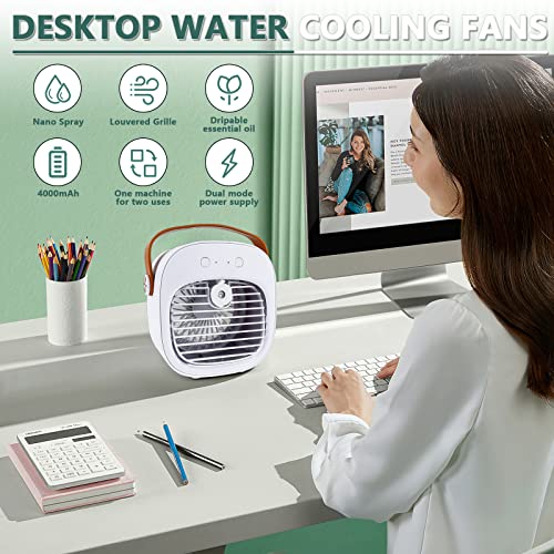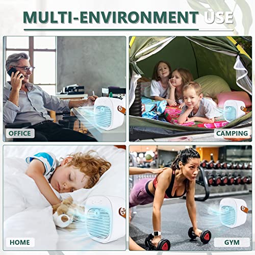 Mini Condizionatore Portatile, 2 in 1 Mini Raffreddatore d'aria Portatile, Piccola Ventola di Raffreddamento Dell'aria Personale USB con 3 Modalità per Casa Interni ed Esterni