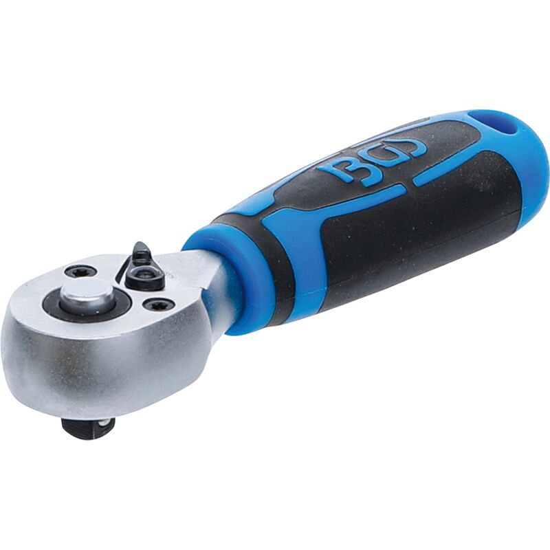 Lunghezza totale cortissima per spazi ristretti Versione robusta e compatta Commutabile Dentatura fine Con pulsante a sgancio rapido disposto sulla testa a cricco Leva di inversione incassata Impugnatura ergonomica antiscivolo a 2 componenti Dimensione del profilo di uscita, imperiale 1/4 Tipo di maniglia 2-Komponenten-Griff Profilo di uscita Außenvierkant Finitura della superficie Verchromt, matt Imballaggio adatto per essere appeso alla parete Ja Dimensione del profilo di uscita, metrico 6,3 mm Lunghezza (cavo) 110 mm Peso del tessuto 0.122 Denti 72 Dimensioni dell'imballaggio 1 Peso lordo 122 g Materiale (F) Chrom-Vanadium-Stahl