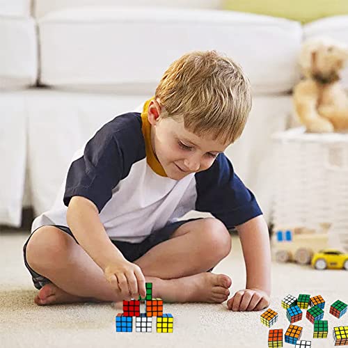 Mini set di cubi magici: il set contiene 12 mini cubetti di Rubik per bambini con dimensioni di 3 x 3 x 3 cm, leggeri e abbastanza piccoli da essere portati con te, il che li rende un ottimo regalo per i giochi di viaggio. Con questo giocattolo non sarà mai noioso per te e i tuoi amici, sia in auto, in campeggio o a casa.