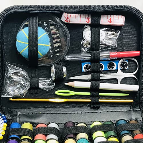 Mini set da cucito da viaggio, 129 pezzi, accessori da cucito fai da te, piccolo kit da cucito per casa, in viaggio e in caso di emergenza, con aghi da cucito, ditale, forbici, filo, metro a nastro