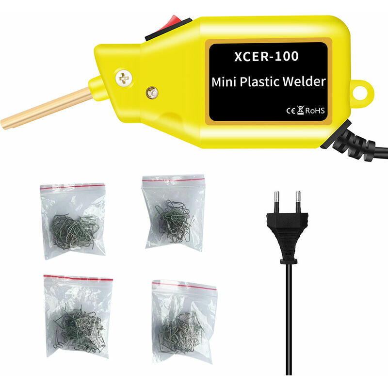 Caratteristiche: * Funzioni: saldatura di plastica, piantatura di chiodi, saldatura di crepe, taglio a caldo, saldatura di fibre di saldatura * Design umanizzato: la maniglia tradizionale viene rimossa, che consente di risparmiare spazio ed è più comodo da usare. Può gestire bene i dettagli e riparare in modo più preciso. * Tubo saldato in rame puro, impugnatura antiscottatura, portatile e compatto, riscaldamento rapido, nessuna combustione, saldatura salda, riscaldamento rapido in 3 secondi * Rilegatura non si inceppa, l'inserimento regolare è più sicuro, l'operazione con una sola mano è rapida, consente di risparmiare tempo e fatica e migliora l'efficienza del lavoro. * Ripara almeno il 98% delle materie plastiche sul mercato. Perfetto per riparare: paraurti, cruscotto, portalampada, anello in plastica, radiatore, spoiler, maniglie, fari, parafanghi in plastica, dispositivo in plastica per auto e moto, ecc. < /p> Specifiche: Tensione di ingresso: spina europea (220 V) / spina
