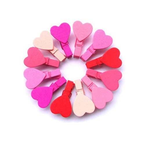 12 Mini cuore da appendere, in legno, con clip per le mollette