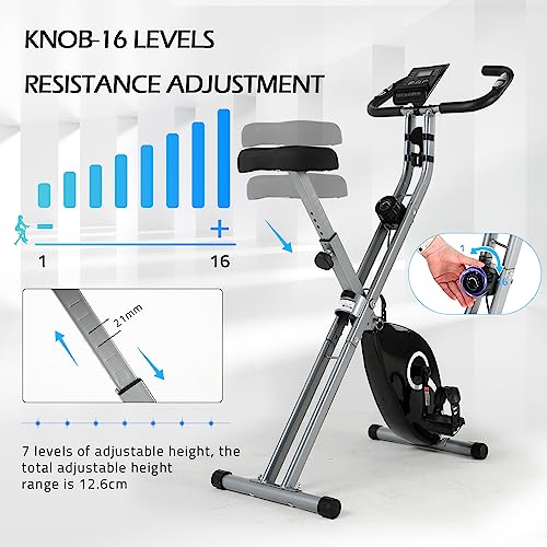 ISE Mini Cyclette Pieghevole, Cyclette Cardio Training 16 Livelli di Resistenza, Display LCD con 7 Funzioni, Cyclette Indoor con Sensore di Frequenza Cardiaca, Bluetooth, SY-812