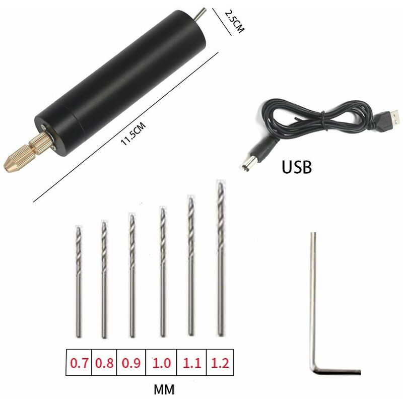Caratteristiche: Multifunzionale: Dimensioni ridotte, leggero, facile da trasportare. L'impugnatura comfort offre un migliore controllo durante il taglio, l'incisione, la fresatura, la molatura, la lucidatura, la rimozione e la foratura. Ampia applicazione: Ideale per praticare fori in plastica, legno, acrilico, perline, prodotti di carta, fogli sottili di alluminio, circuiti stampati, gusci di tiglio, dadi e gusci di noci. Ricarica USB: Dotato di cavo dati USB, è possibile utilizzare la testina di ricarica rapida del telefono cellulare, la banca di alimentazione e il computer per caricare, il che è comodo e veloce. Materiale di alta qualità: guscio in lega di alluminio, aspetto sabbiato, lunga durata. Dado a pinza in metallo, la pinza è stabile e non fa cadere il trapano. Design semplice per un facile utilizzo e un rapido cambio di pinze o altri accessori. La descrizione: Multifunzionale: Di piccole dimensioni, leggero, facile da trasportare. L'impugnatura comfort offre un migliore