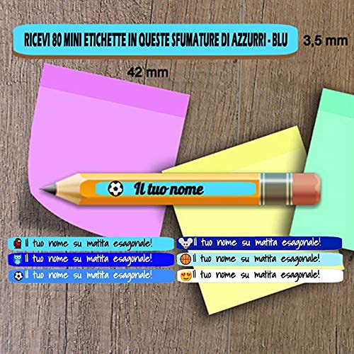 AWS 80 Mini Etichette Adesive LE UNICHE PER MATITE ESAGONALI Misure 42 x 3,5 mm scuola Personalizzate Nome e logo adesivi per quaderni e materiale scolastico pastelli penne