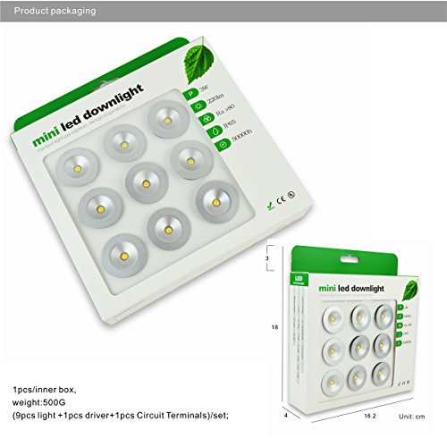 Mini faretto LED incasso a mini 9PCS 1 W dimmerabile con driver 85 - 277 V AC per armadio casa, ristorante, DIY illuminazione bianco caldo naturale bianco freddo, CE RoHS (bianco caldo, Dim)