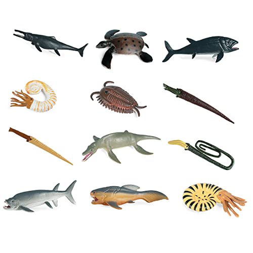 12 mini figure di piccole dimensioni preistorico oceano mare animale figurine realistiche marine in miniatura playset, topper per torta per bambini, decorazione di compleanno, regalo, scuola progetto