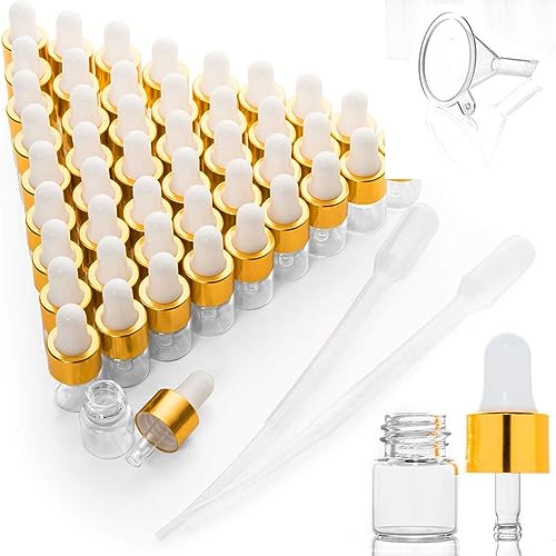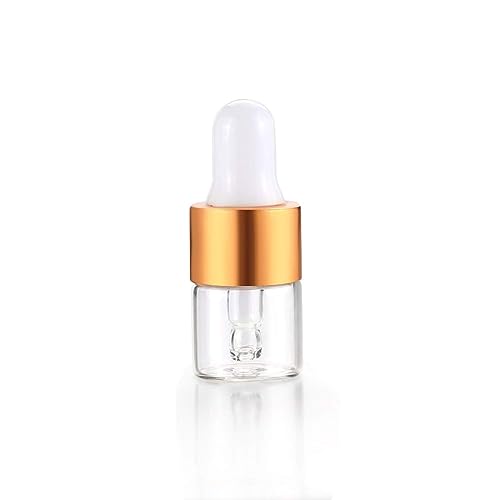 Mini flaconi contagocce da 50 pezzi, flaconi vuoti per tintura in vetro con tappi dorati, fiale per campioni di profumo per oli essenziali, olio per il corpo e liquidi (1 ml)