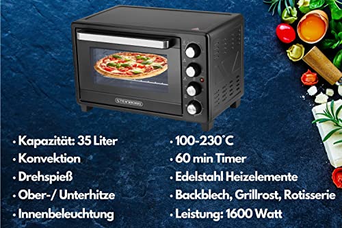 Mini forno 35 litri | 1600 Watt | forno per pizza | illuminazione interna | Include teglia e griglia | Spiedo elettrico | Mini forno | Mini forno | Mini forno | Timer 60 min