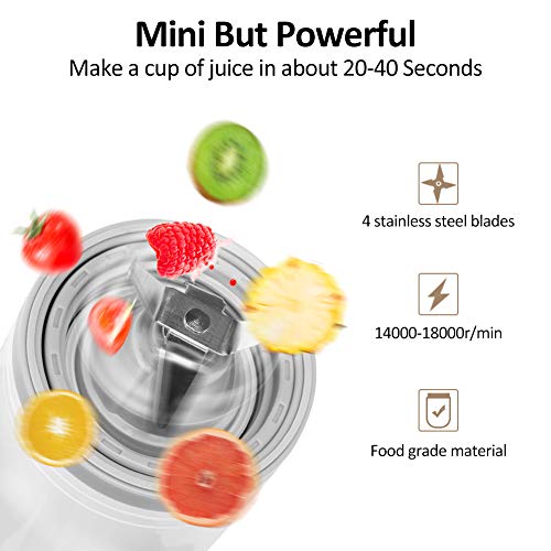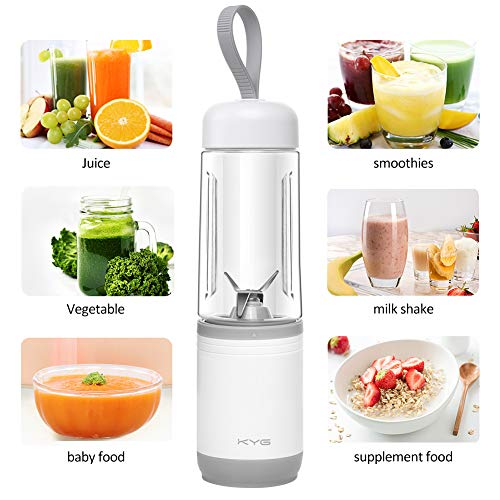 KYG Mini Frullatore Elettrico Portatile Miscelatore Sportivo con Tazza da 350 ml Dotato di 4 Lame Bianco