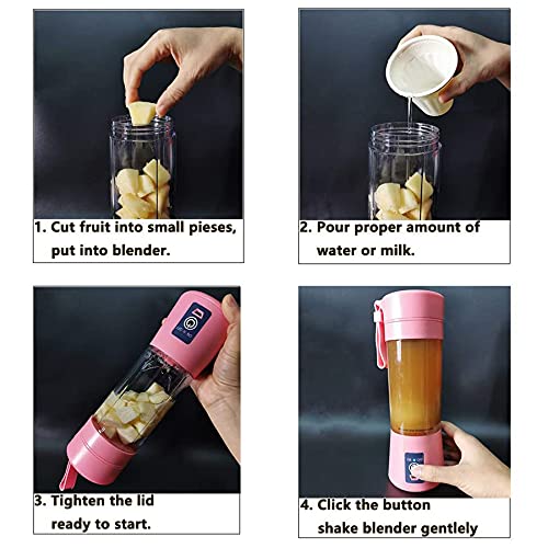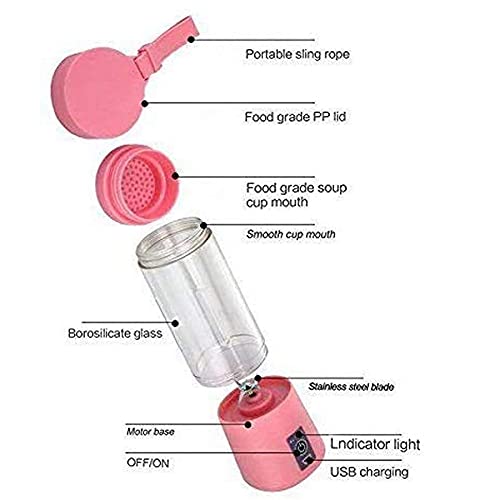 Mini Frullatore, Personal Blender, Portable Juicer Cup Frullatore Elettrico USB Frullatore, Ricaricabile, Sei Lame in 3D Per un Superbo Mixaggio, 380mL Rosa