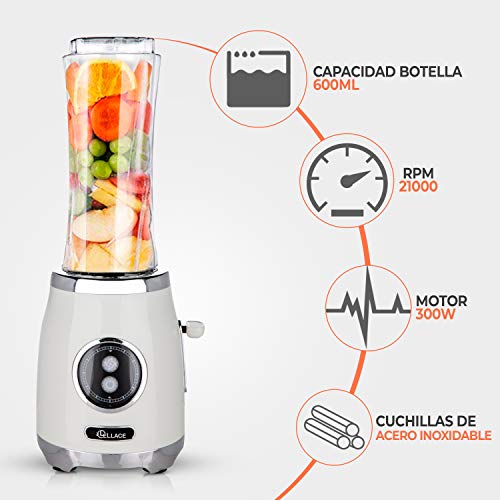 Mini Frullatore Portatile. Frullatore per Frullati e Smoothie con 2 Flaconi Portatili 600ml senza BPA. 4 Lame in Acciaio Inossidabile e Mini libro con 8 ricette. (Ivory)