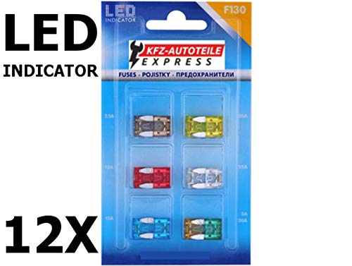 Set di 12 mini fusibili a LED per auto, 5A 7, 5A 10A 15A 20A 25A 30A