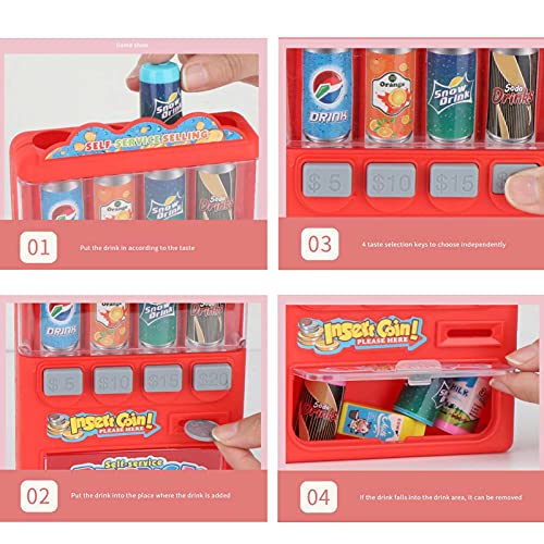 Funzionamento semplice: per sperimentare il processo di acquisto, i bambini possono inserire monete nella fessura per monete, scegliere una bevanda e la bevanda uscirà. Il funzionamento semplice migliora la conoscenza dello shopping e le abilità pratiche dei bambini.