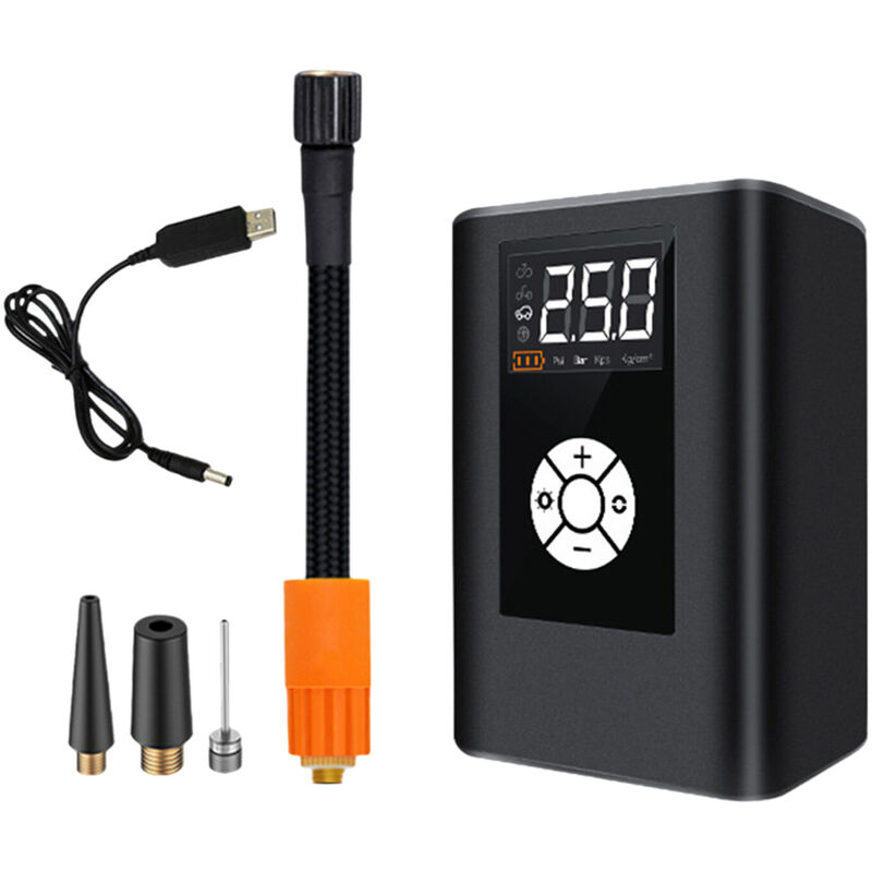 Descrizione: Il compressore d'aria portatile da 120 CV è dotato di 3 adattatori per ugelli perfettamente progettati per una varietà di articoli da gonfiare, come pneumatici per biciclette, pneumatici per auto per uso domestico, pneumatici per moto, pneumatici per biciclette elettriche, palloni, anelli da nuoto, giocattoli gonfiabili e altri gonfiabili. Caratteristiche: [4 modalità] Un tasto per passare tra quattro modalità, tra cui modalità auto, modalità moto, modalità bicicletta e modalità palla. [Sicuro da usare] Preimpostare la pressione dei pneumatici, quindi fare clic su Avvia, la macchina si fermerà automaticamente quando il pneumatico è pieno d'aria. [Grande capacità] Il compressore d'aria ha una batteria al litio ricaricabile incorporata da 4000 mAh. È possibile caricare il compressore d'aria tramite un cavo USB. [Luce LED] Il compressore d'aria portatile può essere utilizzato come torcia come dispositivo di illuminazione di emergenza al buio. [Misura pressione] Collega