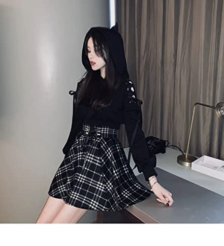 Questa graziosa gonna presenta coulisse in vita alta, ampia fascia in vita, motivo plaid nero e grigio, design svasato, ideale per le ragazze per presentare un bel stile gotico.
