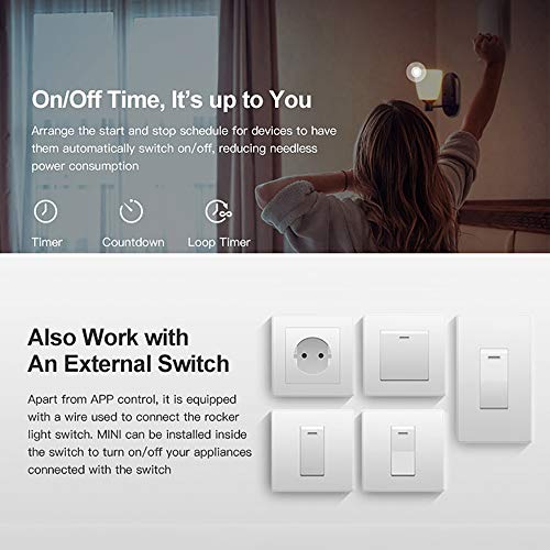 Mini Interruttore WiFi, Fai-da-Te Interruttore Alexa Smart Switch Telecomando per Elettrodomestici, Controllo Vocale Funziona con Alexa Google Home Nest IFTTT