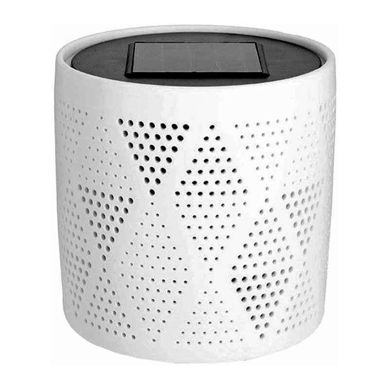 LAMPADA DA TAVOLO A LED SOLARE: JANINA SMALL è una lanterna solare in ceramica bianca con una base a LED bianco caldo che ha fino a 6 ore di autonomia. Il motivo geometrico creato dalle piccole perforazioni nella ceramica è esaltato dalla luce emessa. La lanterna JANINA SMALL è ideale come lampada da tavolo, lampada da comodino o luce notturna per la stanza di un bambino. USO ESTERNO / INTERNO: dopo una rapida carica solare della tua lanterna JANINA SMALL, puoi usare questa luce in diversi spazi, dentro casa o fuori. AUTONOMIA: perché la lanterna solare JANINA SMALL si carichi correttamente, è necessario esporre il suo pannello solare al sole per diverse ore. Una volta caricato, sarà in grado di illuminare il tuo spazio per circa 6 ore. INTENSITÀ: la lanterna JANINA SMALL ha una luce bianca calda che porterà un'atmosfera morbida e calda al tuo spazio. La luce è soffusa. PRATICO, ROBUSTO E MODERNO: la lanterna JANINA SMALL può essere usata all'aperto perché è resistente agli spruzzi