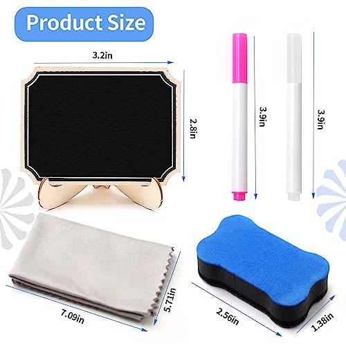 Set di 12 mini lavagnette con 2 penne e 1 salviettine per la pulizia, mini lavagnetta in legno, per cartellini dei prezzi, segnaposto, compleanno, buffet