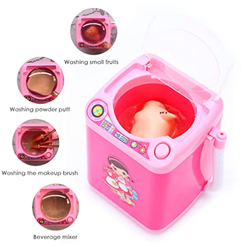 NC Mini Lavatrice Giocattolo, Simulazione Lavatrice Pulizia Automatica, Strumento di Pulizia Spugna Pennello Trucco Regalo Giocattolo per Bambini (Rosa)