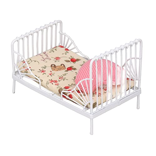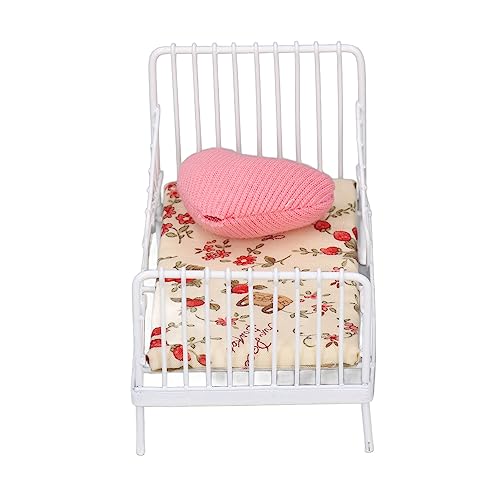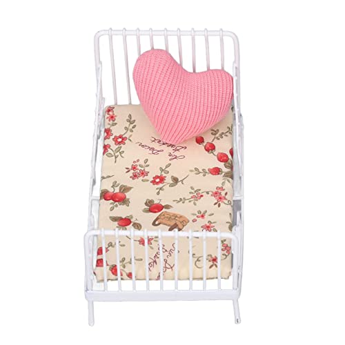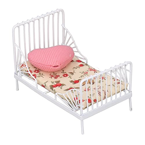 Mini Letto per Casa delle Bambole, Mobili per Letto per Casa delle Bambole Realistico Telaio in Metallo in Scala 1:12 con Cuscino per Adulti (Motivo floreale)