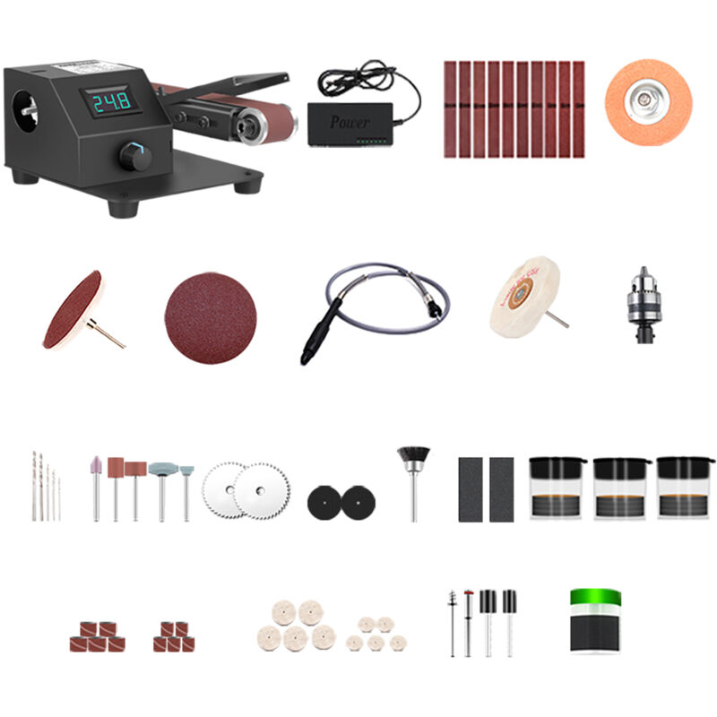 Caratteristiche: Rettifica multi-angolo, facile da usare: la levigatrice a nastro elettrica può essere in avanti e indietro e l'angolo del piano di lavoro è regolabile, per un lavoro migliore e preciso. Motore potente: con prestazioni eccellenti, il potente motore da 350 W funziona a basso rumore, dissipa il calore velocemente, offre alta velocità. Comoda regolazione: regolazione continua della velocità per soddisfare le diverse esigenze. Materiale di alta qualità: caratteristiche della levigatrice non facilmente arrugginite, resistenti all'usura, solide, durevoli. Ampie applicazioni: può essere utilizzato su metallo, legno, acrilico, pietra, bodhi, anima di ulivo, ecc., efficiente e che fa risparmiare tempo. Rettifica multiangolo: braccio di rettifica regolabile da 0 a 90 gradi. Rettifica ad arco: il design della molatura ad arco verticale può regolare l'arco del braccio di molatura per facilitare la molatura dell'arco. Rettifica ad angolo retto: il supporto per molatura verticale