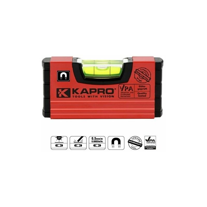 MINI LIVELLA MAGNETICA KAPRO MOD. HANDY LEVEL MAGNETIC Mini livella con base magnetica, lunghezza 10 cm. Prodotto adatto per USO PROFESSIONALE. Caratteristiche Fiala resistente agli urti inserita in blocco di acrilico solido Realizzata in profilato di alluminio Terminali resistenti agli urti Precisione di misura: < 0,5 mm/m Lunghezza: 10 cm Peso: 92 g Certificata VPA 15 anni di garanzia KAPRO