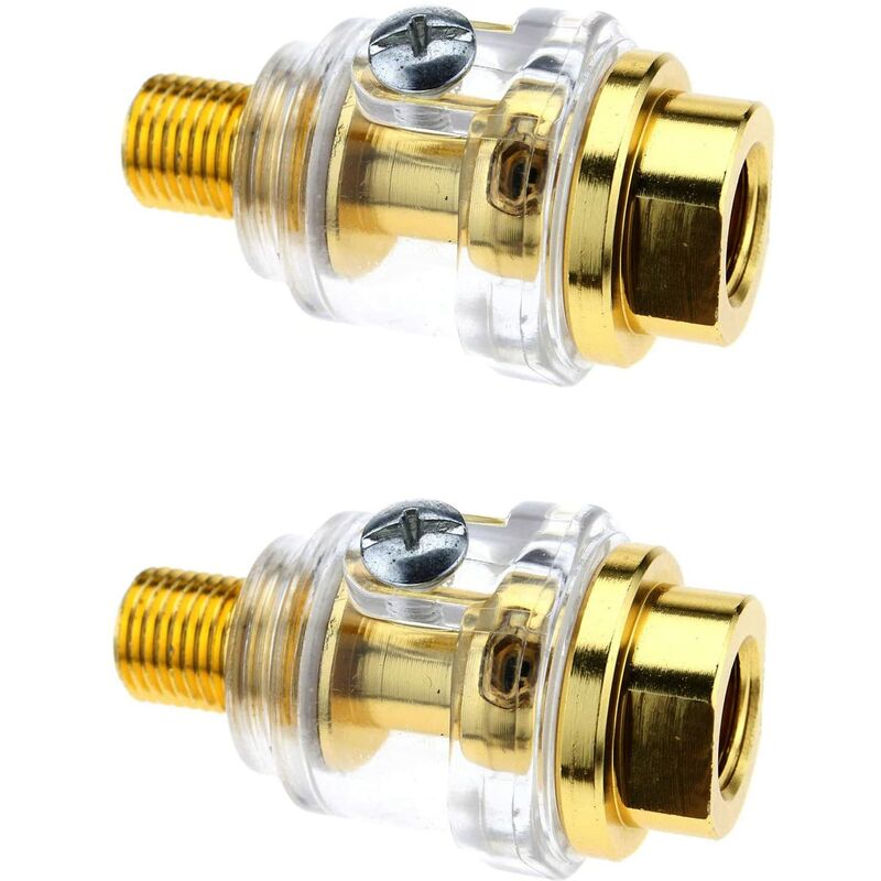 Colore come mostrato Taglia: 7,1 x 5,4 x 3,4 cm Peso: 170 grammi Qualità: dimensioni ridotte, peso leggero, materiale in lega di zinco di alta qualità, placcatura in rame. Lega di zinco a basso punto di fusione, buona fluidità, saldatura per fusione, facile saldatura e lavorazione della plastica, resistenza alla corrosione nell'atmosfera e facile riciclaggio e rifusione dei rifiuti residui. Aria compressa di dimensioni del lubrificatore: maschio da 1/4 di pollice e filetto femmina, adatto per il fissaggio all'utensile o per l'interconnessione nella linea dell'aria compressa. Piccolo, leggero e portatile, molto facile da trasportare. Principio: In un ascensore con pattini di guida ad attrito scorrevole, l'attrito del cuscinetto aumenta considerevolmente nella direzione della rotaia di guida senza lubrificante, il che porta a una rapida usura del cuscinetto e alla perdita di energia di attrito. La lubrificazione delle guide può essere utilizzata per la lubrificazione e la