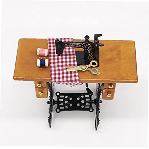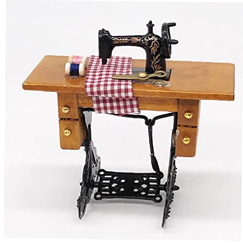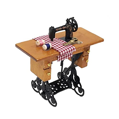Mini Macchina Per Cucire Dollhouse Miniature 1:12 in Scala Macchina Da Cucire Per La Decorazione Della Casa Delle Bambole Marrone