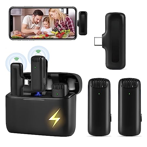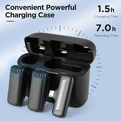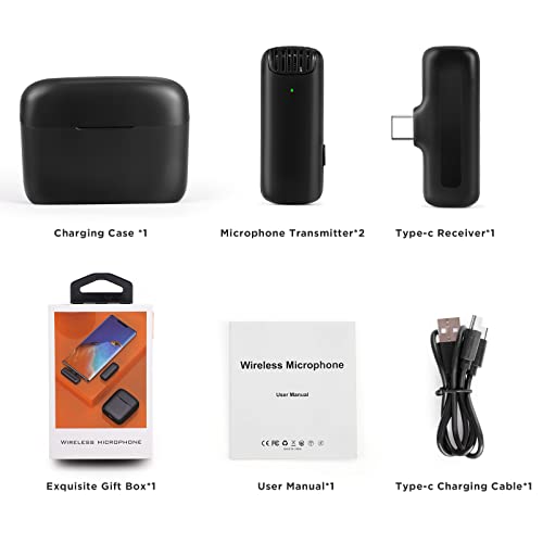 Mini Microfono Lavalier Wireless, 2 Pezzi 2.4 GHz Microfono Plug-Play Senza Fili per Tipo-C, con Scatola di Ricarica, per Live Streaming, YouTube, TikTok, Vlog, Registrazione Video (B-Tipo-C)