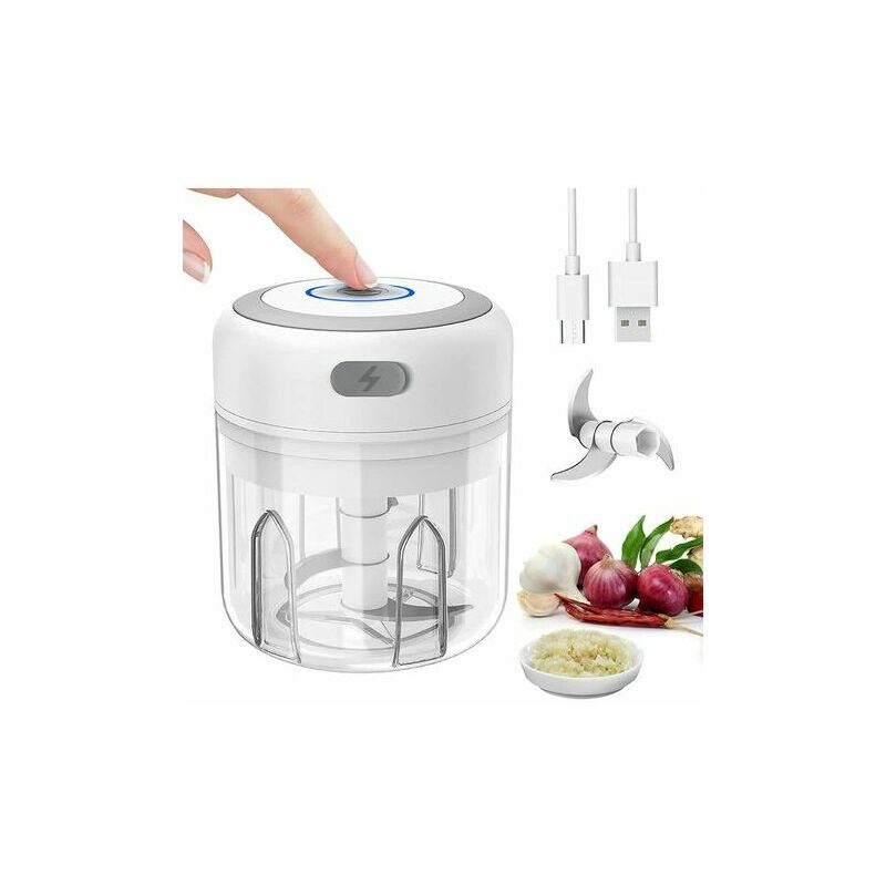 Tritatutto per uso alimentare - Questo tritatutto elettrico è realizzato con materiali ABS, PP e PC per uso alimentare, innocui per la famiglia e i bambini, corpo della tazza per uso alimentare, plastica atossica, sicuro per contenere alimenti, solido e più resistente a caduta. Lama affilata in acciaio inossidabile incorporata con angolo di 45 gradi, resistente alle alte temperature e alla corrosione. e inizia con un clic per distruggere rapidamente il cibo, eliminando il problema del disegno a mano.Può essere trasformato in purè di aglio in 10 secondi. 【Ricarica USB】Dotato di ricarica USB, batteria ad alta capacità da 1200 mAh, lungo durata della batteria. Carica solo per 3 ore e puoi goderti più di un mese di h display cordless. Il tritatutto elettrico può essere caricato in vari modi, ad esempio: caricando power bank, power bank, computer e laptop. 【Facile da pulire】 Il corpo e il coperchio del tritaverdure sono rimovibili. Puoi rimuovere la lama e lavare la lama e il corpo della