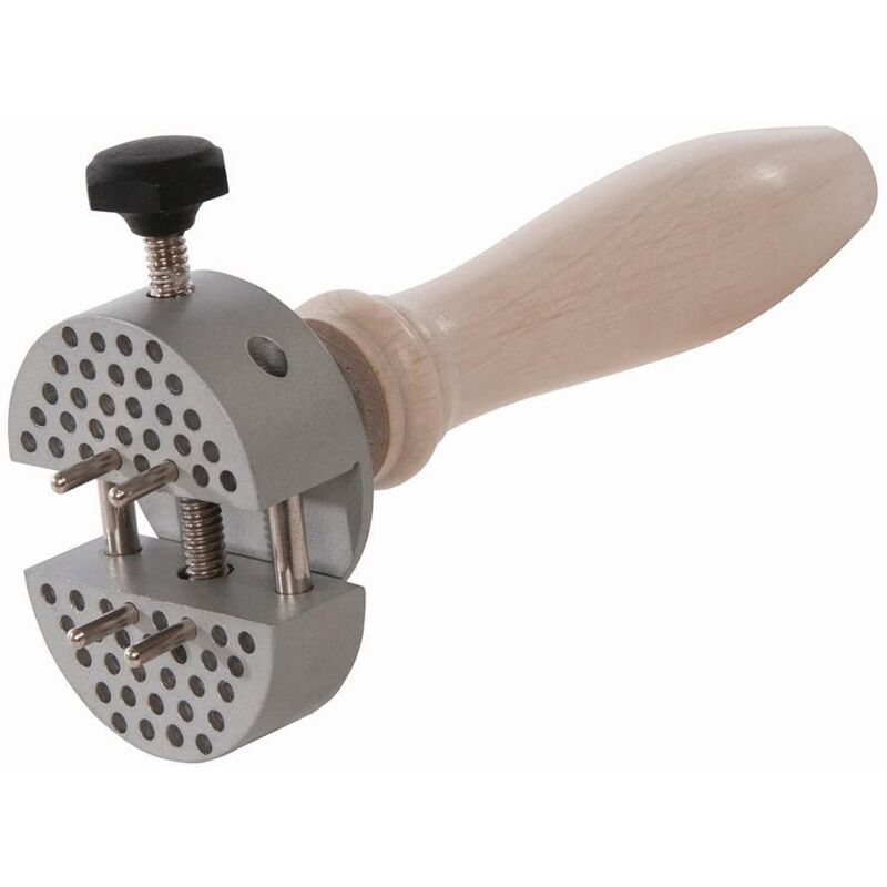 Maniglia rimovibile in modo testa puo' essere bloccato in panchina vizio. Ideale per piccoli e irregolari oggetti di forma, gli elementi gioiellerie, ecc per l'archiviazione, pittura, incisione, taglio, modellatura lavoro. Include 8 perni in acciaio per bloccare strane forme. Capacita' Jaw 21 millimetri;