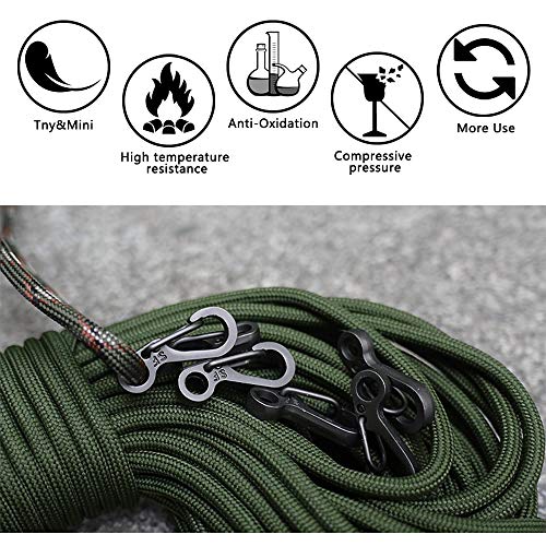 Mini dimensione: il mini moschettone SF ha le stesse dimensioni di un centesimo, con una lunghezza totale di 2,5 cm e un'apertura di 0,5 cm, l'apertura massima della molla è di 0,7 cm, che può essere perfettamente abbinato con 550 corde paracord.