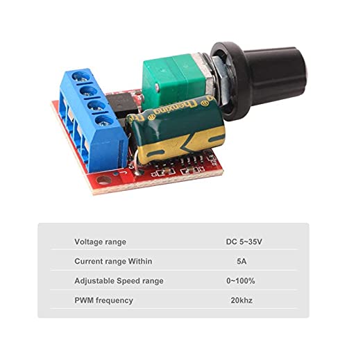 Mini DC Motor PWM Speed Controller, DC 5V-35V 5A Speed Switch Module, 6V 12V 24V Variable Voltage Regulator Dimmer Governor Switching Build with LED Indicator