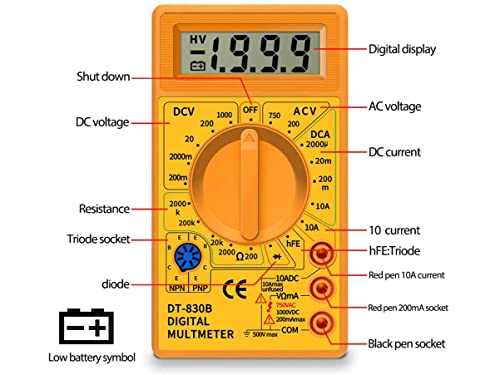 Mini Multimetro Digitale, Tester Universale Tascabile, Voltmetro Amperometro Ohm Tester DT830B (120X68X22mm)