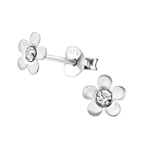 Mini orecchini, in argento Sterling, a forma di fiore, con cristalli trasparenti