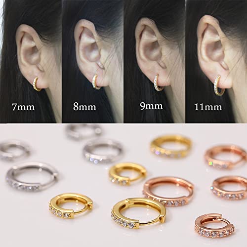 Mini Orecchini a cerchio Argento Sterling 925 per Donna Uomo Piccoli Cerchi Zircone Cartilagine Helix Lobe Orecchio Ipoallergenici Argento/Oro/Oro Rosa 7MM 8MM 9MM 11MM