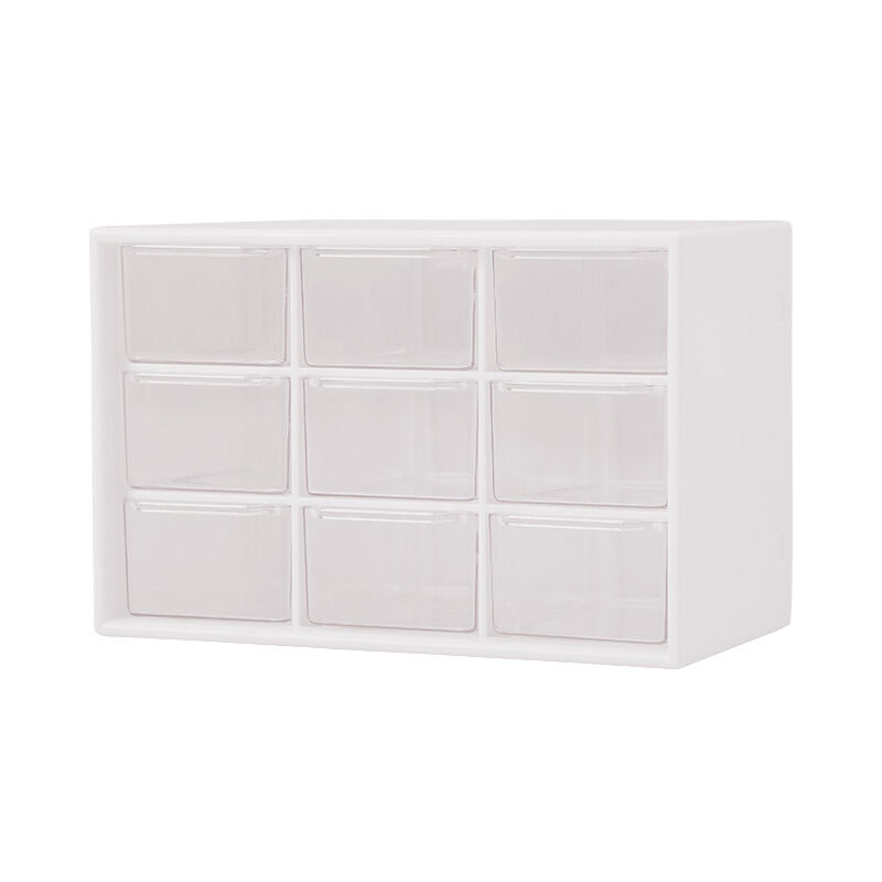 SCATOLA DA SCRIVANIA PER PICCOLI ACCESSORI - Questa scatola da scrivania è ideale per contenere piccoli articoli di cancelleria e postali come cucitrici, temperamatite, fermagli per raccoglitori, elastici, colla stick, gomme da cancellare, francobolli, timbri in gomma, tamponi di inchiostro ecc. Proteggi i tuoi oggetti dalla polvere. 【DESIGN A 9 CASSETTI】 9 cassetti in plastica scorrevoli separati non solo contengono tutti i tuoi oggetti più piccoli, ma mantengono anche il piccolo stazionario separato e ordinato. Mantieni il tuo spazio di lavoro ordinato e le tue forniture a portata di mano. 【DESIGN DELLA SCATOLA DI ESPOSIZIONE TRASPARENTE】 I cassetti della scatola di immagazzinaggio sono realizzati in materiale plastico cristallino, bello e resistente. Può memorizzare e visualizzare perfettamente le cose di uso quotidiano. Puoi trovare rapidamente ciò di cui hai bisogno con i contenitori trasparenti da scrivania. 【SCATOLA DI FORNITURA PER UFFICIO MULTIFUNZIONALE】 la scatola può