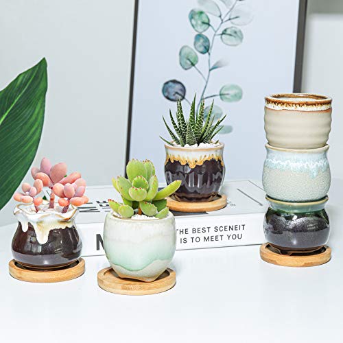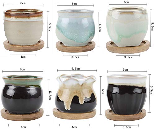|Specifiche dell'articolo: 6 piccoli vasi in ceramica (6 cm di diametro, 5,5 cm di altezza), 6 vassoi in bambù abbinati. ** Pianta NON Inclusa**