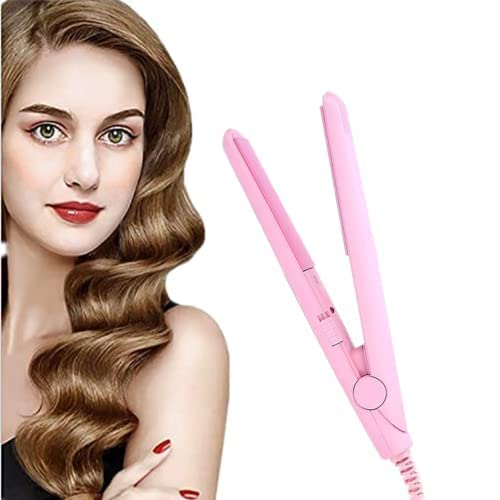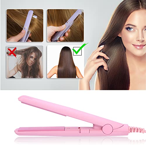 Mini piastra per capelli, 4 colori 2 in 1 Mini ferro arricciacapelli Piastra in tormalina in ceramica Bellezza ferro piatto Arricciacapelli riscaldante per tutti i tipi di capelli Rende (Rosa)