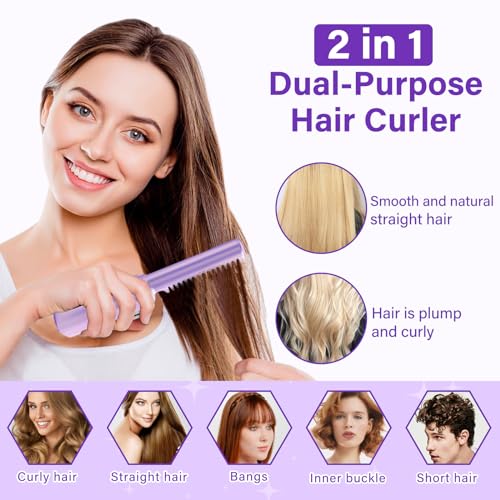 [Design unico per un facile utilizzo] A differenza delle piastre per capelli tradizionali, la nostra piastra portatile ha un pettine incorporato con denti, che la rende facile da usare. Basta pettinare i capelli per ottenere l'acconciatura perfetta. Spazzola e arricciacapelli anti-scottatura 2-in-1: per ottenere un look perfetto con un solo strumento!
